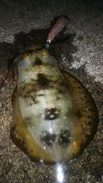 仕事帰りに、エギングへ!少し離れた人がHITしたら、すぐにオレもHIT! 地合い到来と思いましたが、この一瞬で終了・・・後は反応ナッシング。 仕事帰りなので、早々と終了としました。