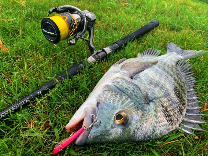 テトラや障害物周辺でチーバスと戯れた後、でけぇーのいないかなぁーってオープンエリアでフルキャスト!ボトム意識してナイスなおチヌ様
