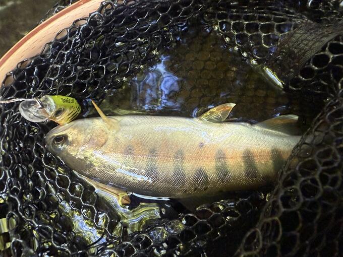 先ほどの魚を釣って、さらに上流ポイントで追加! 誘い方はトゥイッチの後にショートステイを入れると食ってきました!
