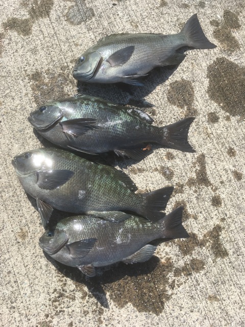予報はあまり良くなかったものの、ようやく釣れだしたとのことだったので、3月14日南伊豆妻良へメジナ狙いで釣行してきました。南西風が強く沖には出られないとのことだったので、三島のコビトリという湾内向きの磯へ渡りました。ここは足場が前下がりで悪いものの、メジナの実績は高い磯です。先週の釣行から喰いが渋くタナも深いということは解っていたので、TGタイドマスター流巧M G2を使い、サオ1本半からメジナのタナを探っていきます。風裏とはいっても周りこんでくる風で仕掛けがなかなか馴染みませんが、軽い仕掛けを深いタナまで入れ込むことでアタリが多く引き出せます。最初のアタリは強烈でしたが、40cmほどのカンダイ。続いて35cmほどのメジナが顔を出しましたが、後が続きません。どうも風で流される上潮の影響でコマセから仕掛けがズレてしまうようなので、TGピースマスター 遠投M -0を用い、ウキを早めに下潮に合わせることで39cmのメジナが喰ってきました。しかし喰わせるパターンは掴んだものの、潮が動くとポツンと喰ってくるという厳しい状況でした。なかなか思い描くような釣りは出来ませんでしたが、ここにきてようやく状況が上向いてきたようです。凪の良い日ならば、もっと良い釣果が期待出来ると思います。