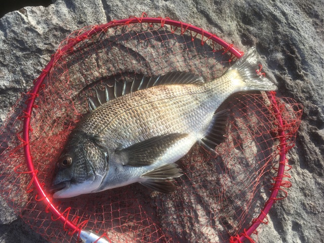 東京で桜が満開になった3月30日。そろそろ乗っ込みのシーズンを迎えるクロダイを求め、様子見がてら午後から湾奥の江東区若洲海浜公園へ行ってきました。この公園の釣り場は主に防波堤と人口磯に分かれます。五目釣りのファミリーなどは防波堤に多く見られますが、我々は人口磯へ向います。磯といっても人工的に石が敷き詰められ足場も良くお手軽な釣り場です。あまり釣れていないのか、先端にルアーの釣り人が数人いるだけでウキフカセの人はいません。「まあ今日は様子見だから」と気負わずにエサを作りタックルをセットします。仕掛けはウェーブマスターMの0にチューニングシンカーを貼って浮力を抑え、G6,G7の段打ちで仕掛けが馴染むとウキが沈むように調整します。湾奥の釣り場では潮流が弱く、上潮が風に影響されやすいので、ウキを沈めてサオ先でアタリをとるのが効果的です。まだ水温が低いせいかエサトリもほとんどなく刺しエサがきれいに残ってきます。開始から30分ほどは沈黙が続きましたが、潮の流れが変わり始めたころウキが沈むスピードが早くなり初のアタリがきました。グビを振る小気味よい引きに本命を確信し、水面に現れたのは36センチのクロダイ。銀ピカのきれいな魚体は沖から入ってきた証拠、乗っ込みの個体です。その後は風が強くなり釣りにくくなりましたが、38センチを追加。続いてアタリがきましたがこれは根ズレでバラしてしまいました。ともあれ3回のアタリがあったことから、これからしばらくは乗っ込みクロダイが楽しめそうです。