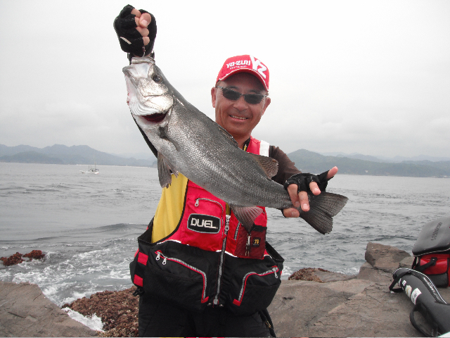 以前から約束していた友人と、南伊豆下田沖磯へ旬のイサキ狙いで釣行してきました。友人はシマアジを狙いたいというので横根の本場を目指します。この時期は美味しいイサキが釣れることもあり、船は多くの人でにぎわっていました。無事、本場へ渡ることが出来ましたが、ここは小サバこそいないものの、やはり渡り鳥の群れが寄ってきました。数は少なくなったといってもすぐに10羽ほどに囲まれてします。前日にも鳥で痛い目にあわされているのでうんざりです。そこでTGピースマスター磯ビヨンド2号にTB カーボン2号、TGウェーブマスターL G2にB、G2、G5をセットして遠投。タナをとったらゆっくりと手前へと寄せてきて、コマセとあわせるという作戦で鳥をかわしてイサキを釣ることに成功。潮が下げてきたところで、船長が石取小根へ行かないかと迎えにきました。めったに乗れない磯だけにそそくさとタックルをたたみ磯替えです。ここ石取小根はヒラスズキの好ポイントでもあり、とりあえずルアーを投げてみると一発でヒット。60センチクラスながらうれしい一匹です。その後、小根では、イサキ、メジナ混じりでクーラーボックスに入りきらないほどの釣果に恵まれました。下田沖の各磯ではまだまだイサキが楽しめます。エサトリのタカベも美味しい時期なので、小バリもお忘れなく。
