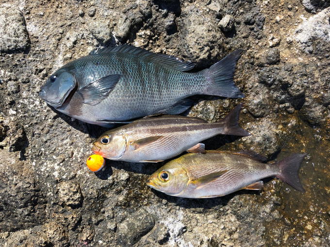 久しぶりに南伊豆仲木へ釣行してきました。今シーズン好調のメジナもそろそろ終盤。イサキの釣果も出てきたこともありどちらも狙える白根という磯へ釣友二人で渡りました。早い下り潮が入っていたので、先端は釣友に譲り、地方向きの「タカ」と呼ばれるポイントに釣り座を構えます。TGピースマスター遠投00にハリスを入れこみウキが流れをしっかり掴むとラインがパラパラと気持ちよく出ていきます。そして流れの筋にさしかかるとラインが勢いよく走り、1投目からイサキが喰ってきました。このまま入れ食いかと思いましたが後が続かず、どうも底潮が冷たい二枚潮のようでした。それでもメジナとイサキは終日ポツポツと釣れそれなりに楽しめました。メジナは37センチ止まりでしたが、イサキはこれからがシーズンです。気候も良くなり楽しい釣りが出来ると思います。