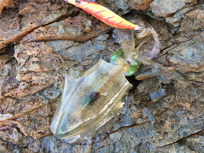 朝から3時間の短時間勝負。風が強く、ラインは操作性を追求したSuper X-wire8の0.6号を使用。またエギはアピール力のあるオレンジカラーを選択。元気の良い子イカが遊んでくれました。やさしくリリース。