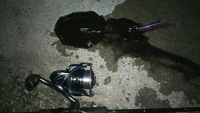 夕マヅメ、エギングに行きましたが・・・到着して用意をしていると、自宅でエギを補充して、車に積み込むのを忘れてることに気が付きました。 車の中からゴソゴソと・・・エギを発見! 何とかエギングを開始ですが・・・嫌な横風が。 立ち位置やキャストする方向を色々と考えて・・・何とか意地の1杯! 悪条件の中、ちゃんとキャストが出来て、アタリも取れたラインに感謝!です。