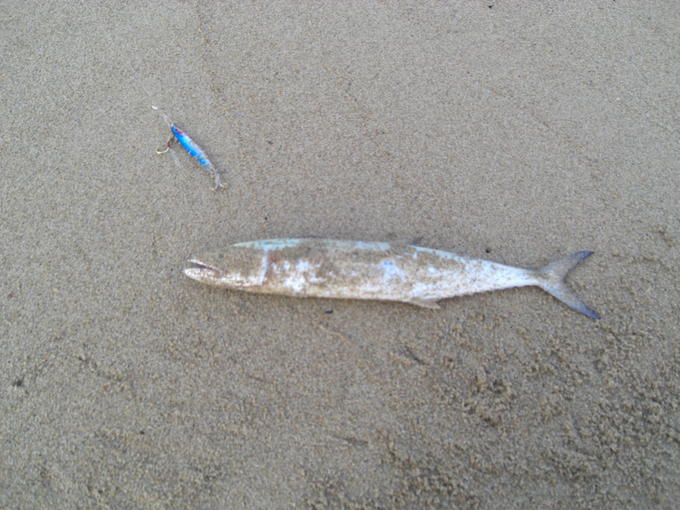 水温の低下が激しくベイトもいない海ですがサゴシは元気でした。 稀にPEラインのマーキングに噛み付かれて切れるラインがありますがスーパーエックスワイヤー8は大丈夫っぽい?