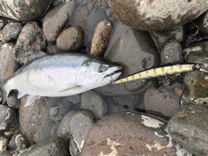 出張先で仕事終わりの短時間勝負。海サクラ狙いのワレットには廃盤になってしまいましたが、このミノー150Sが先発ローテーションで収まっています。再販しても近年の北海道では人気になるはずです。