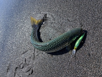 今時期のサーフではメインターゲットでしたが、近年、赤潮等の影響で数が少なくなったアメマス。海アメ独特のグリーンバックが綺麗な個体が釣れました。使用したルアーは廃盤カラーのオリーブコノシロ。実はこの色、年中使えるパイロットカラーなので大切に使っています。