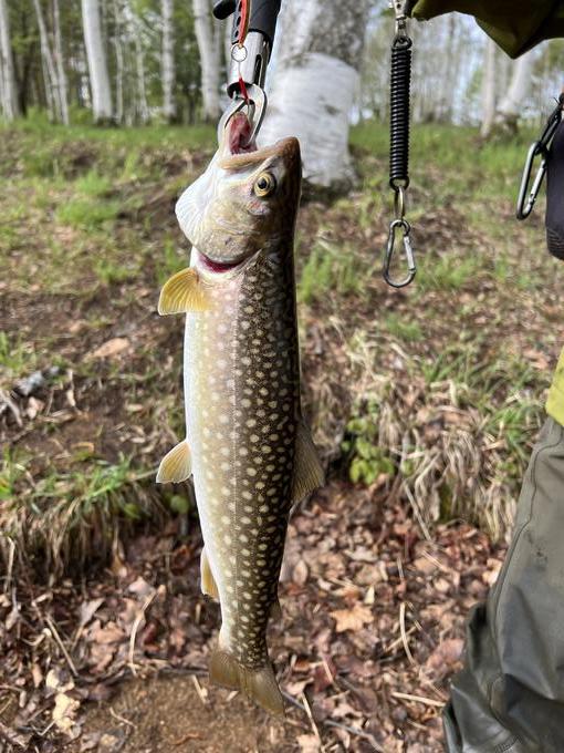 岩洞湖サクラマス狙いにきて、嬉しいゲスト!アメマスです。早朝チャンスタイムは何が起こる。35センチの良型でした。