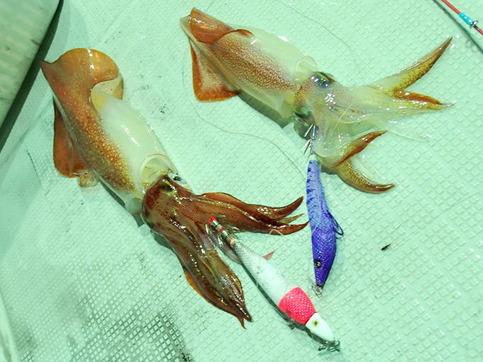 好調が伝えられる玄界灘姪浜沖のイカメタルに出撃しました。信頼の鉛スッテとドロッパーを迷わずチョイスするとヒット連発でした。