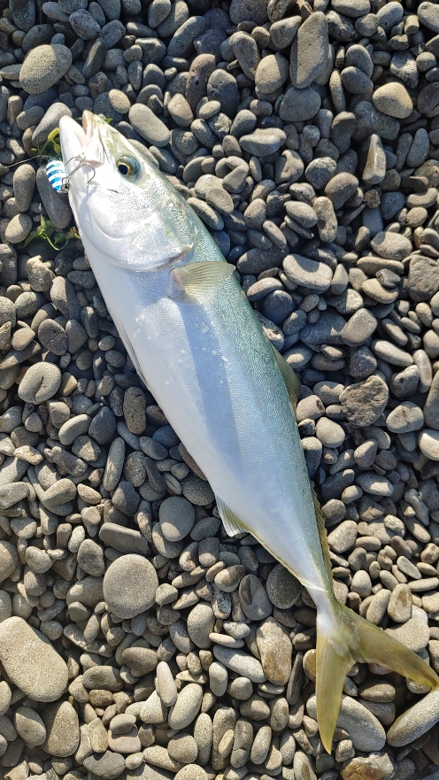 やっと青物がゴロタで釣れ出したので、様子見で行ってみたら、昼間だったのに釣れちゃいました!これでやっと今期、初の青物です! サイズは47cmくらいかなぁ。