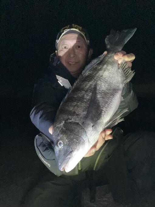 夕まずめからの上げ潮を狙って吹上浜にある防波堤へチヌ釣りに行って来ました。釣り開始から小型のチヌ(メイタ)は釣れるものの、中々サイズアップしないと思っていたが、完全に暗くなった頃ようやくチヌと呼べるサイズに出会えました。