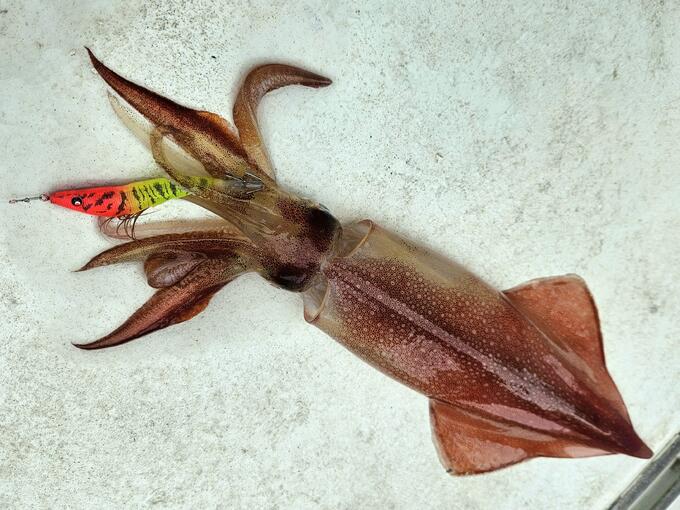デイイカメタルに、佐賀県松浦市より出撃。デイはボトムべったりのパラソルケンサキイカを狙う。テッパンの、鉛スッテはイージーベイトメタル™ 25号 RLRM、ドリッパーはイージースリム™ 布巻/オーロラ 95mm LRYをチョイス。40cmオーバーのパラソルの乱舞に、してやったりの釣行でした。