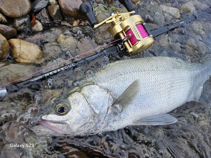 雨後のタイミングで河川に鱸釣りにいきました。 まだ日があるうちに160㍉のペンシルに来たのはヒラスズキでした。 モンスターゲーム9をベイトリールで使う際はブレーキをやや強めに掛けた方が使いやすいですね。 張りがあるのでその膨らみを抑えるイメージで。