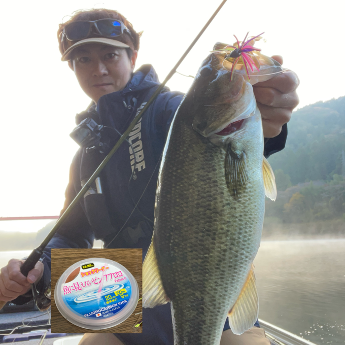 増水中のリザーバーへ。 増水にともなって増えるカバーに対して魚に見えないピンクフロロリーダーのパワーフィネス。 魚に見えないピンクフロロのリーダー用はサイズもコンパクトで持ち運びも便利やしめちゃくちゃおすすめです。