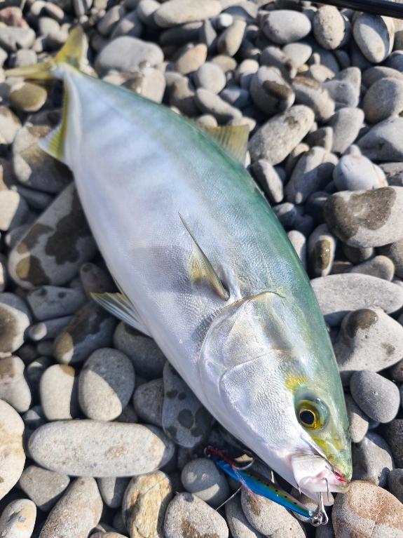 昨日に引き続き、調子に乗ってショアジギングへ。 本日は3投目にヒット。 昨日よりも一回り小振りなため、難なく確保! 最近、ショアジギが絶好調です。