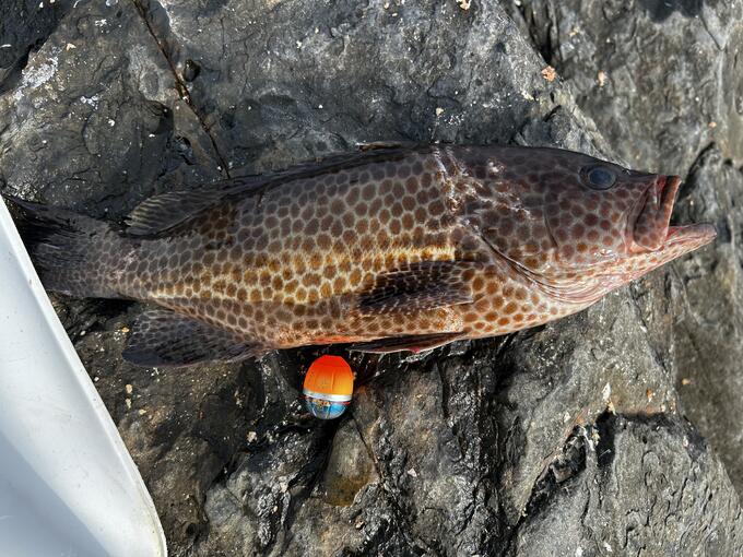 釣り納めで武者泊へ釣行しました。年末で釣り客がいつもより多い中、鼻面地の3番(三角の3番)に渡礁。ターゲットのグレは竿一本下に悠々泳いでいるのが見てるが、スイッチが入ってないのかマキエに反応せず素通りする。グレの通過した先を目視で見てみると50㎝近くあろう口太グレが沸いている。すかさず遠投して狙うもさすがにかからない。あの手この手でオオモンハタ40㎝を確保するのが精一杯でした。