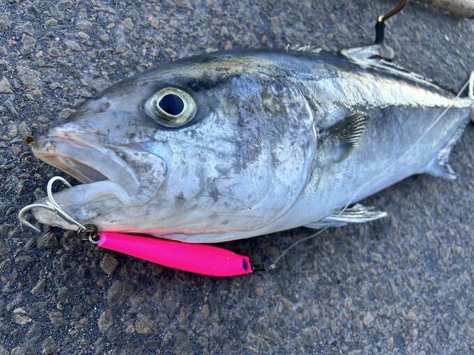 ワンピッチジャーク早まきで表層でバイト 78センチカンパチキャッチ