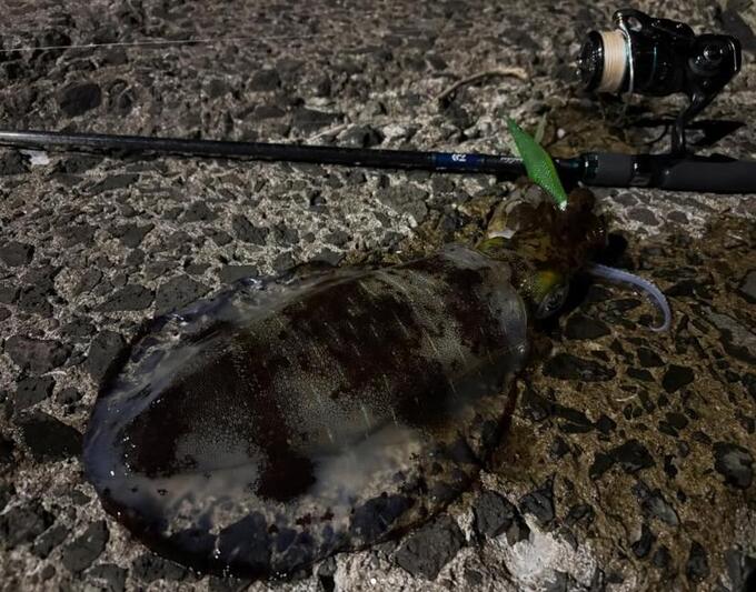 この日は風の強い中、早朝より60分勝負。長崎県北部のとある漁港の常夜灯前にエントリー。使用するエギはEQエギオリジナル3.5号夜光グリーングリーン。明暗部を輪切りに丁寧に探っていくと、フォール中に明確な抱き。風に邪魔されながらもエギの姿勢とラインテンションを意識した操作がハマり、狙い通り良型がヒット。朝マズメらしい、集中力が試される一本でした。