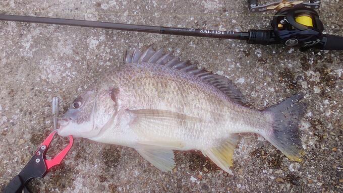 高砂~姫路方面に釣行しました。河川を巡り、ソリッドバイブ55、65でボトムを探ってキビレ37.5cmと小チヌが釣れました。ソリッドバイブを跳ね上げてのリアクションバイトでした。これからは乗っ込みチヌが期待でき、バイブレーションチニングが面白くなります。年無しサイズ等の良型ヒットの可能性が大です。