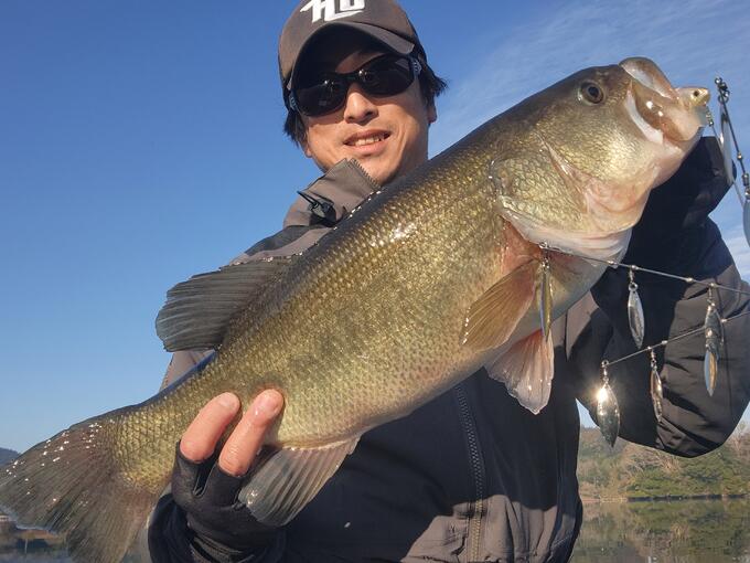 用事があるため午前中のみの釣行。 昨年から釣れているブレードアラバマをメインにやっていきました。 バスは魚探に映るもののなかなか喰わず苦戦していましたがなんとか58cmをキャッチに成功しました! その後には50cmもキャッチ! H.Dカーボンバスモデルを巻いて3回目の釣行でしたがクセが少し着くものの強さは余裕であります!特にこの時期はガイドが凍ったりしてラインに傷が付きやすいので摩擦と引張強度があるこのラインはおすすめです!