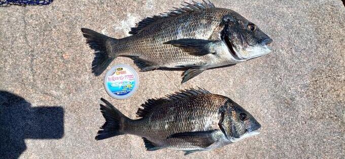 山口県東部の由宇町の地磯にてチヌ釣り 元気のいいチヌが数匹釣れた。型も40オーバーも何枚か釣れた。エサ取りは少ないので今は釣りやすい