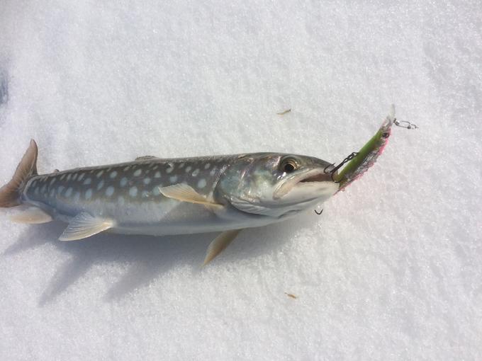 早春の小川釣行第三弾として、春のアメマス釣りをしてきました。海から数キロに位置するこのポイントは、陸っぱりで小さいながらも数釣りができるため、氷が溶け落ち川面が開いた直後から釣り人の姿が絶えない人気ポイントです。魚が小さいのと広範囲を攻めれる為、多くの方はスプーンをメインに使用していますが、私はハードコアヘビーシンキングミノー50の遠投性を活用し、広範囲にサーチしているとHit!マッディーウォーターなので当初はリアクション系のカラーをチョイスしていましたが、クロームベースのカラーが当たりカラーに気づき、CIWを中心に使用。ボトムの地形をなぞるようにレンジコントロールを行いトゥイッチを織り交ぜながらドリフトさせると、小さいながらも独特の首振りとローリングでファイトをしてくれてました。気温が低いうえに横風が強い中でも、Armored F+を使用することで軽いルアーを広範囲にキャストできました。感度が良いためボトムの形状が想像しやすく、比重が重いため水なじみが良く、ラインスラッグを使って水流を掴んでのドリフトコントロールなど、従来のPEでは難しいライン捌きもモノフィラメントラインに近い感覚で出来るのもArmoredラインの特徴だと思います。