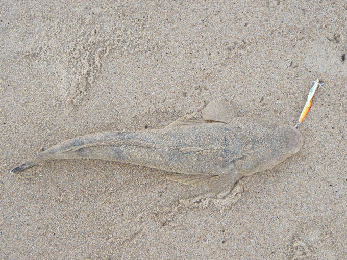 やっと雨と波浪注意報から開放されて久々の海へ行くとマゴチと出会う事が出来ました。 52cm