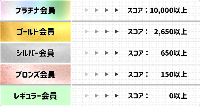 一定のスコアが貯まると、あなたの「会員ランク」がアップ!!