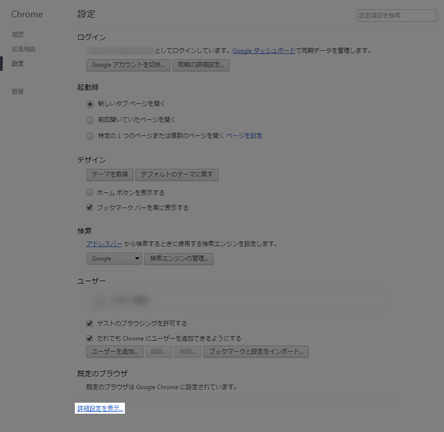 ② ブラウザの設定に関する項目が表示されます。一番下にある「詳細設定を表示...」をクリックして、すべての項目について設定が行える状態にします。