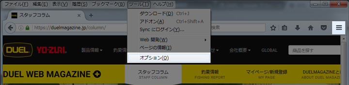 ・キーボードの「Alt」キーを押すと表示される最上部のメニューから「ツール」をクリックし、その中の「オプション」をクリックします。