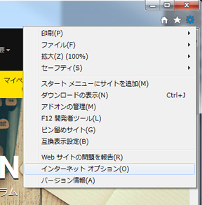 ① 右上にある「歯車」マークをクリックし、「インターネットオプション」を開きます。