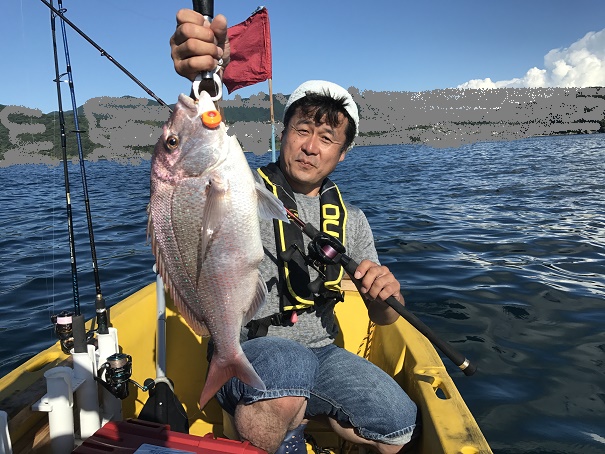 釣友の松尾君と2馬力船出撃。午前中はボートエギングキャスティングゲーム。新発売のEZ-Qダートマスターラトル2.5号、3.0号の各色を投入し広範囲のシャローエリアをサーチ。キャスト後のフォールでコロッケサイズが次々にヒット。まだまだ小ぶりですが10月に入るとサイズも少し良くなり楽しめそうです。お昼からはタイラバに切り替えソルティーラバースライド60g、80gのヘッドカラーMTOG、S、KO、OGRをローテーション。水深は20m~30mの浅いエリアでしたが、松尾君が良型のオオモンハタ、マダイを連続ヒット。私もカラーローテーションと巻き上げのスピードを調整しながらなんとか良型マダイがヒット、この日も船長の的確な状況判断でポイントを移動しながらタイラバも堪能できました。