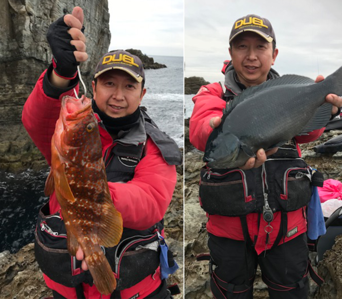 帆足さん、野中さんの釣友2人と五島へクロ狙いで釣行。朝マズメからクロはポツリポツリながらもヒットしてくるがサイズは30から37cmクラス。狙っている40アップがヒットしない。途中潮が緩みクロのアタリが遠のいた時間帯はロックフィッシュを狙い、キジハタ40センチをアタマにアラカブも多数釣れ、再び潮が動き出したところでフカセ釣りにチェンジ。場所を移動し、沖の潮を狙うとクロは入れ食いとなり、納竿間際に40cmのクロを釣ったところで時間切れとなった。