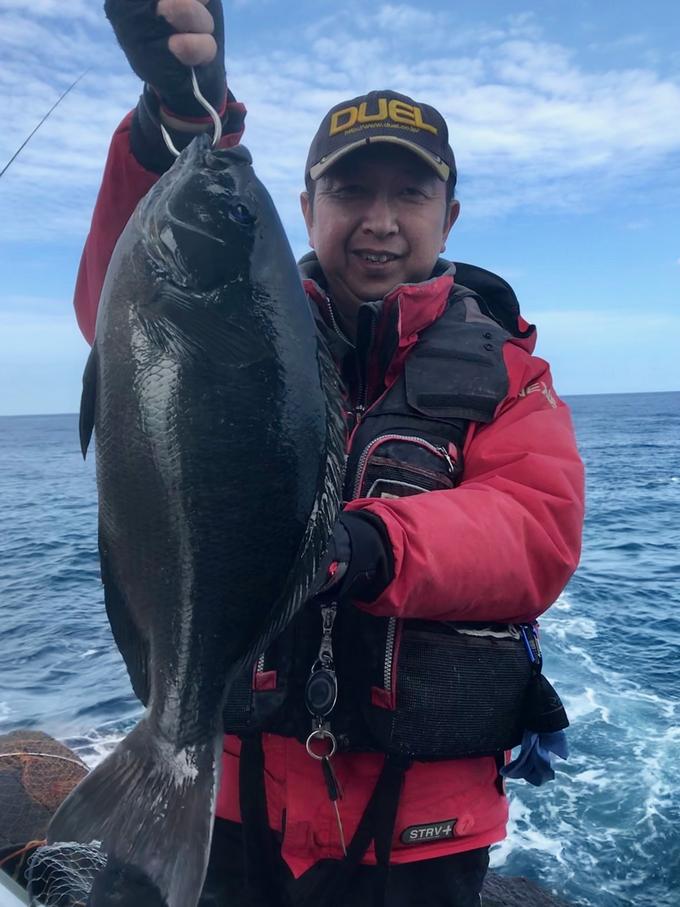 久しぶりに週末と凪が重なった2月18日、帆足さんと最近は育児で中々釣りに行けてなかった松尾君と3人で五島へクロ狙いで釣行。午前2時に帆揚瀬穴の前に瀬上がり。暗い内は仮眠を取って夜明けと共に釣りスタート。朝マズメから帆足さん、松尾君、私と順々に竿は曲がり、クロは2ヒロから竿1本のタナでヒットしてくる。ウネリとサラシに邪魔され入れ食いとはいかないが、当日は釣れるサイズが良く、皆40アップを釣り上げている。下げ潮になると更にクロの釣れるタナは竿1本半から2本と深くなり、釣り辛くなったが、潮目を利用してツケエを送り込み50cmをアタマに数匹のクロを捕獲成功。難しい状況ではあったが、数も何とか2桁は釣れ、楽しめた釣行であった。