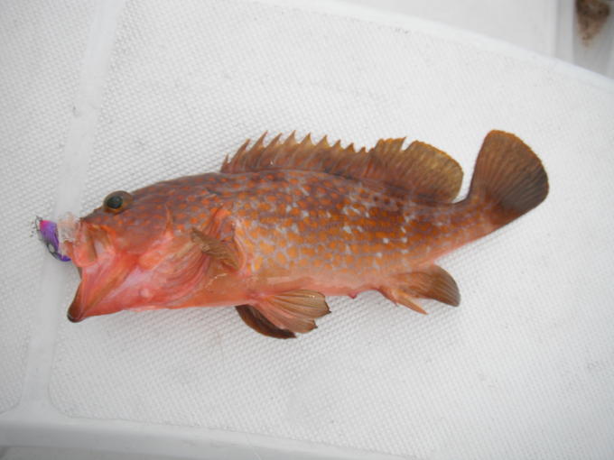 福井県は小浜周辺でエギングの合間にテンヤ釣りをしました。 晩御飯のオカズを増やす為にエギングタックルにフラッシュテンヤ&シバエビをセット。 着底後、リフト&フォールの基本の動きで狙い通りのアコウをGET♪ 同船者もアコウGETで、オカズ分を釣りエギングに戻りました。