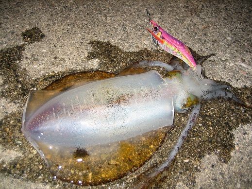 2日連続のナイトエギング。前日と同じような時間帯に連発! 200gを超えるサイズも混じりながら連発で釣れて楽しめました!