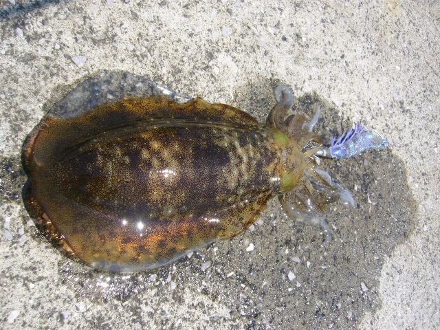 エギを12種類ローテーションし最終的に釣れたのが、リアルイソスジエビ。