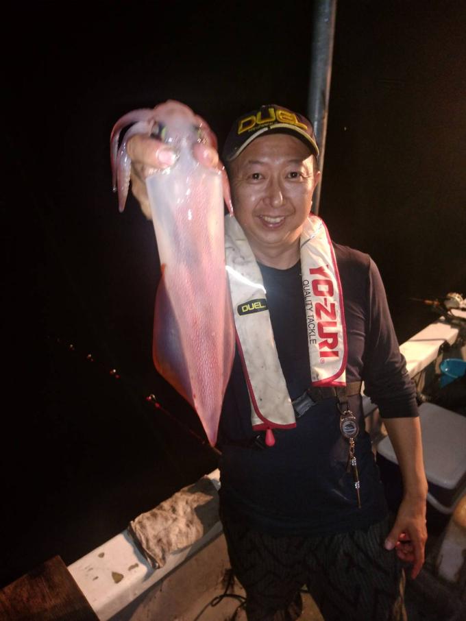 シーズン真っ只中の夜焚きのヤリイカ釣りに、知人の船で釣行。大分からデュエルクラブメンバー西村さん、富田さんも参加し、福岡のメンバー大島さんと私の他に船長門司さんの知人と総勢7名で沖のポイントを目指す。ポイント到着後すぐに仕掛けを入れて探るも当日は潮の流れが速くアタリは散発的。それでも暑い日中とは違い夜風が心地よく。皆納竿の時間まで楽しんだ釣行であった。