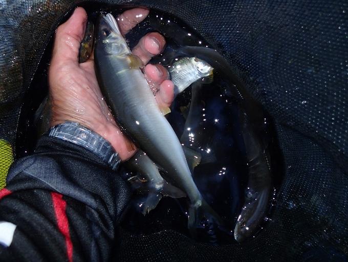 翌日23日台風襲来。友釣りがしばらく出来なくなるかな?と、夕方16時から食材確保に出撃。予想外の良型11、本日23日の朝食の塩焼きの美味しいこと!Armored® FH 鮎-水中糸に感謝!!