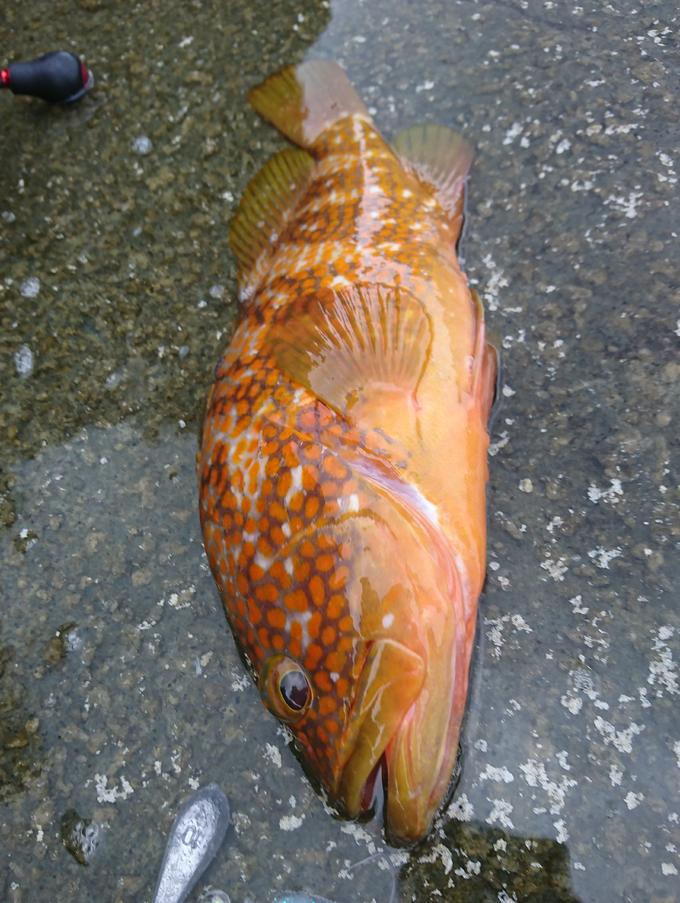 キジハタ狙いで新規ポイント開拓に行って来ました。ショアから水深30~40mの超ディープエリアで潮も速く難易度高め…ファイト中、何度もスタックされましたがBIGフロロカーボンの耐摩耗性能に助けられ無事にキャッチ出来ました。