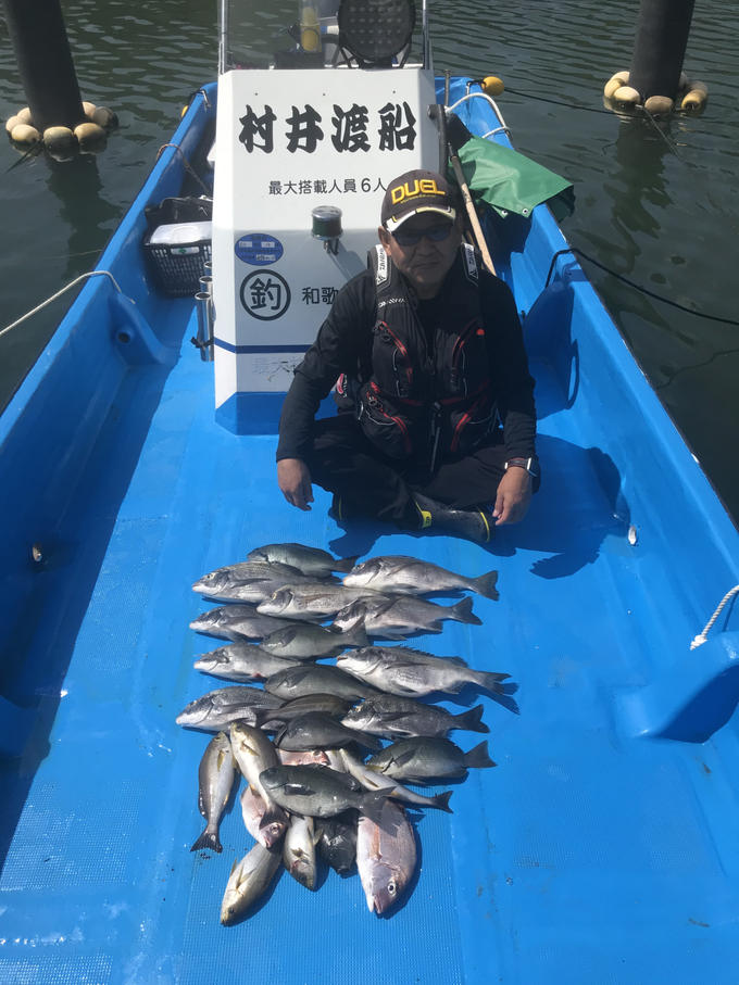 最悪だった6.7.8月。やっと和歌山県もなんとか色々な魚が釣れだして来ましたね。と、言うことで、今年10月6日から和歌山・海南港で新規オープン いたします、村井渡船さん(https://xn--u8ja3q2h1bu27zngybxnl067b.net/ 080-3838-8488)に試し釣りにお誘いを受け行って参りました。 当日は、小潮回りでポイントに着き,釣り始めますが、中々魚の活性も低く、苦戦するだろうと思っていると、少し潮が流れ出し、短竿のかかり釣りの名手である村井渡船の船長さんが連続ヒットで40くらいのチヌを2匹ゲットし、それに続いてこちらのロッドも軽快に曲がるようになり、いい感じと思っていると急に風波が強くなり2時間程度で撤収となってしまいました。結局、グレ32センチ~28センチを7枚とイサギが30センチ5枚、村井船長はさすが名手。43センチ~32センチを9枚の釣果でした。もう少し水温が下がれば本番突入でしょう。