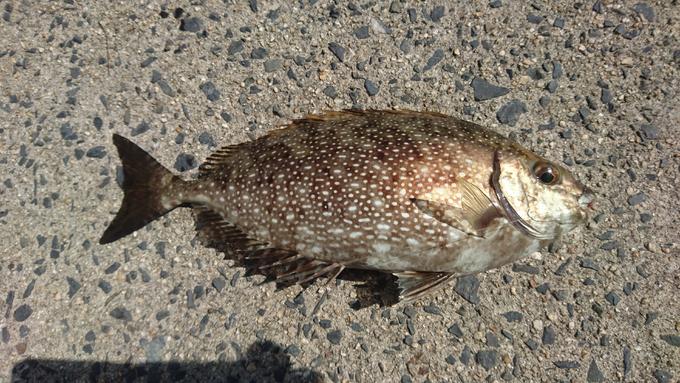 まだまだ海の中は夏 撒き餌を撒くと大量の餌トリ、今日一番の引きでアイゴがヒット