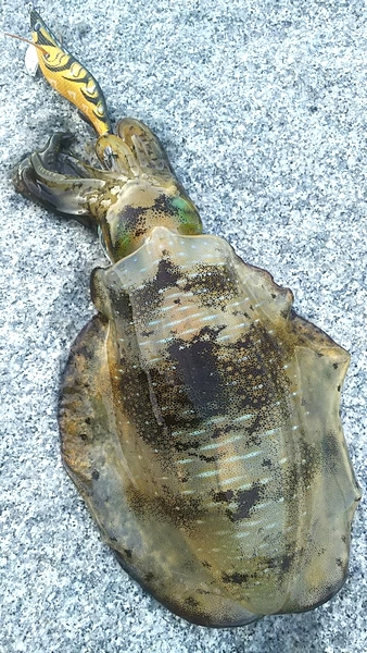 キャスト後、シャクシャクしてからのフォールで、ラインをスゥ~ッと引っ張られアワセるとかなりの重量感!ドラグゆるゆるだったので調整しながら慎重にやりとり。昨年ホームで、このサイズを釣ることが出来なかったので、嬉しい1杯となりました♪