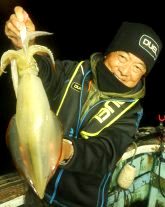 剣先イカは、秋の深まりとともに丸々と太りメタボマイカと呼ばれるようになる。当日夕刻、その成長具合を確認すべく、早瀬の美浜釣舟センターさんで出撃。当日は満月で苦戦が予想されたが、信頼のタックルチョイスが効を奏し、胴長30㎝超のジャンボを含めいずれも夏季よりひと回り以上肥えたメタボマイカ達をゲット、今シーズン終盤の剣先イカの順調な成長を確認することが出来た。