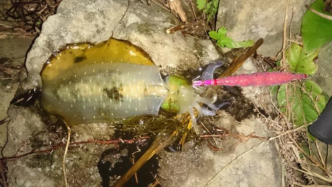使い込んだエギの布を貼り替えた物で漸く釣れた1杯です。