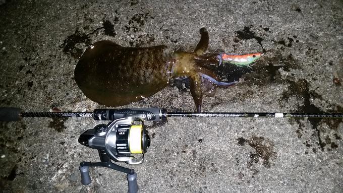 三重県は尾鷲周辺でエギングをしてきました。月夜だったので、エギのシルエットがハッキリする赤・黒系、シルエットがボヤける夜行・ケイムラ系のカラーをローテーションさせて、600gを頭に6杯GETしました♪