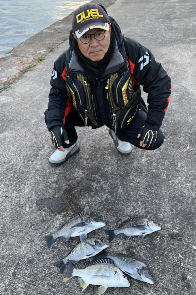 何年かぶりに和歌山築港の波止に釣行してまいりました。 2日に紀ノ川に行きましたが、全く魚の気配が感じられず、 何年か振りにボーズを書いてしまいました。 それで、少しでも水温の高い南港を狙って見たわけですが、 やはり、今度はフグの猛襲でコーンでも太刀打ちできません。 差し餌を粒さなぎに替えて超遠投で狙ってみると、ポツポツとチヌがかかり始め、サイズはともかく、キビレを含めて4匹ゲット出来ました。 釣り方にちょっと工夫が要りますね。