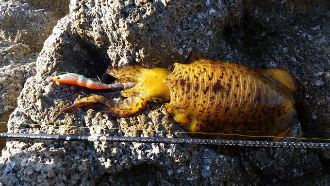 前日に引き続き和歌山県は南紀の地磯でエギングをしてきました。深場と浅場が隣接するワンドの藻場を中心に攻めて、700g程のアオリイカGET♪その後、ポイントをラン&ガンし2杯追加で納竿した。