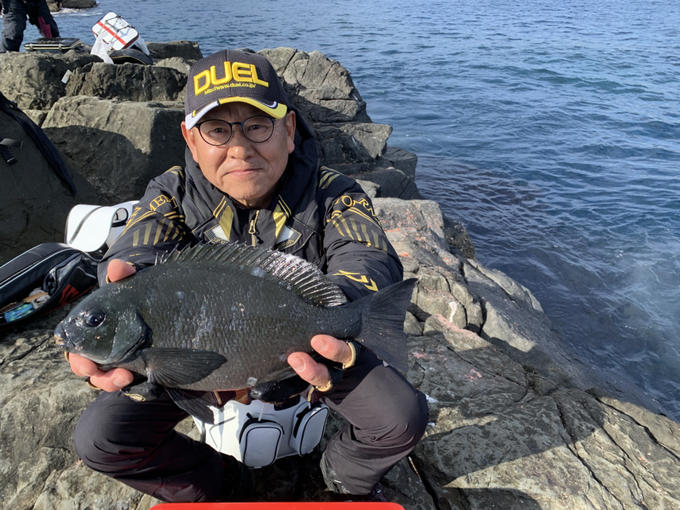 あげて貰ったのは、灘のコーデという磯でした。 和歌山南部は、グレの産卵期に入ったのか、ここ数日食いが悪いとの船長の言葉通り、やはり悪かったですね。潮も悪い流れで、あっちにフラフラこっちにフラフラで、たまに餌は取られますが、全体に活性が低く、かなりの数針はずれがありました。 ウキ下を深くすると、青ブダイや三の字などの外道が多く、終了前に何とか38センチのグレを釣ることが出来ました。